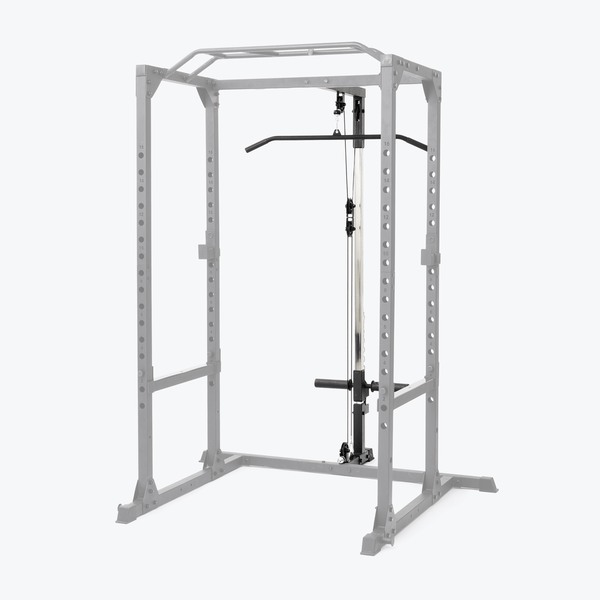 The back pulley attachment for the Ascend Power Cage is perfect if you plan on doing more isolated exercises such as the infamous seated cable row, lat pulldowns or tricep pulldowns. The attachment comes with the pulley attachment a basic lat pulldown bar and a basic short straight bar for tricep pulldowns or bicep curls.