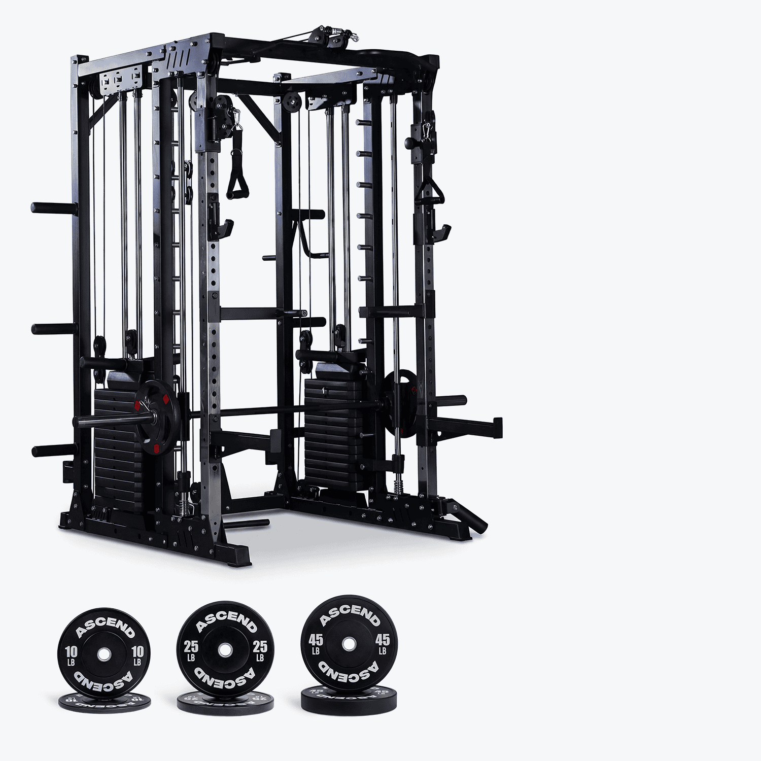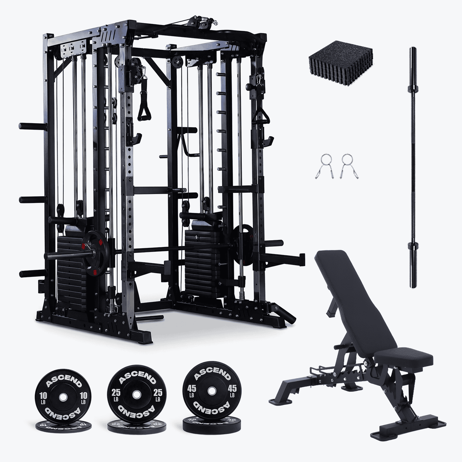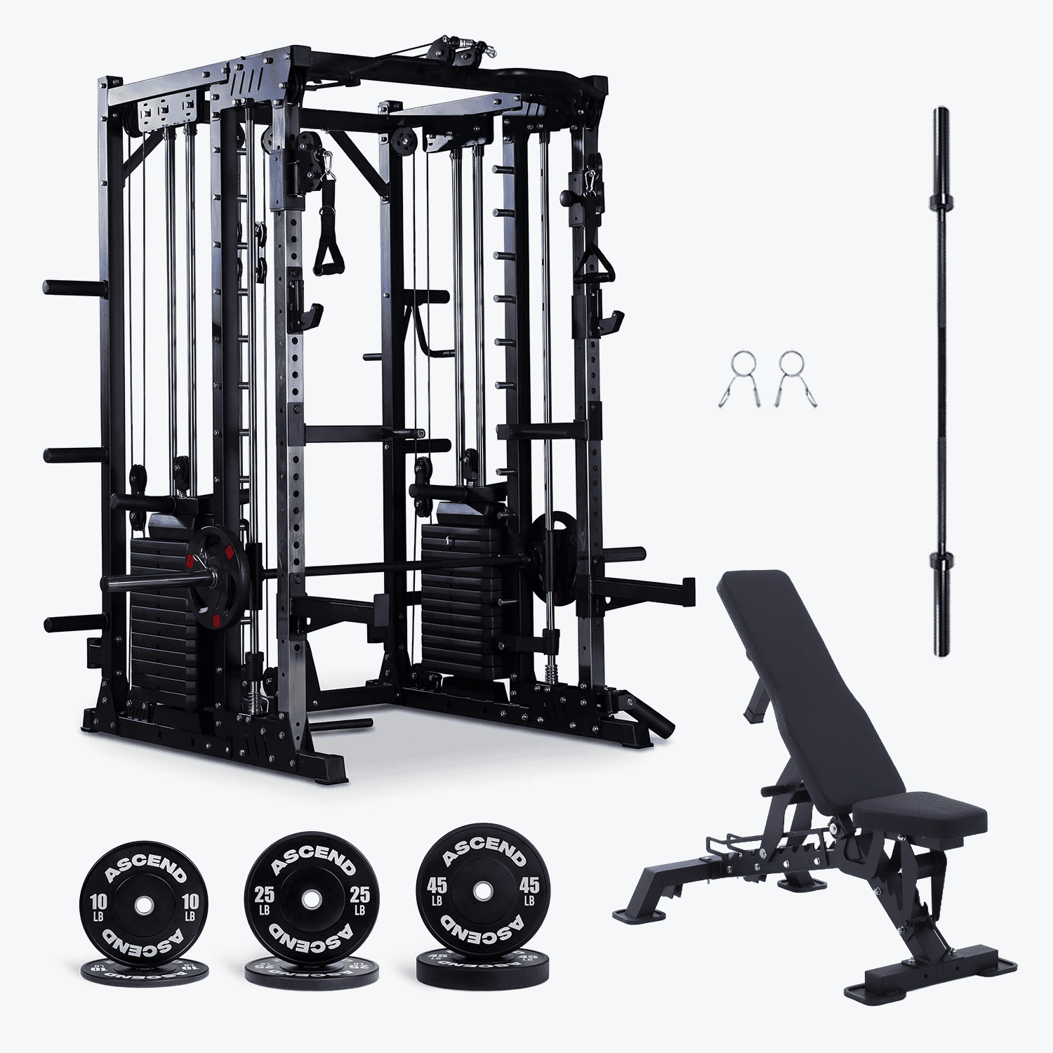 The Ascend SM-900 is the centerpiece of a serious home gym. It is a heavy-duty, full-function Smith machine built with commercial-grade engineering, hyper-durable steel, and a smooth pulley system designed for real strength training. Whether you are squatting, pressing, rowing, or working cables, the SM-900 delivers stability, versatility, and the confidence to train hard at home.