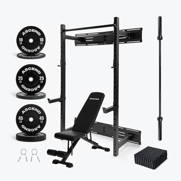 - Foldable wall power rack, the ideal solution if you're looking to incorporate power lifting in your routine, but also want to save space